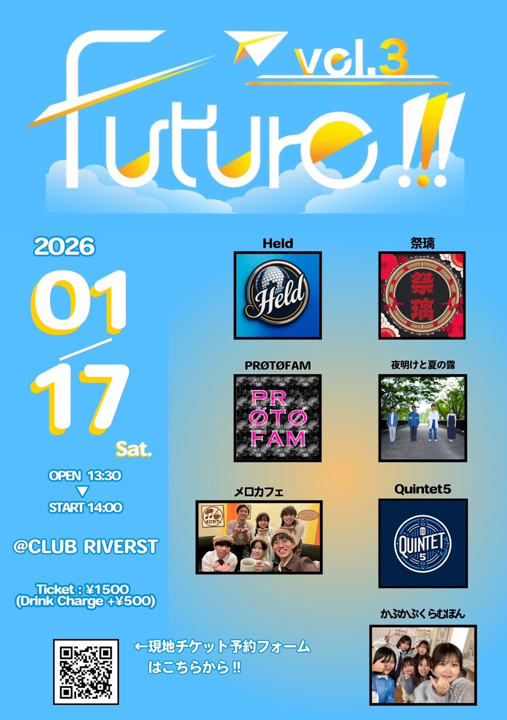 | TICKET | 一般 ¥1,500 / 高校生 ¥1,000 (税込・ドリンクチャージ別¥500) |