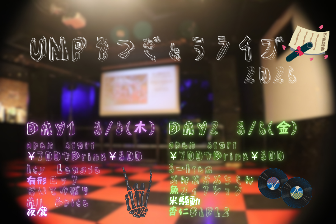 | TICKET | 高校生以下 ¥1000 / ※一般 ¥1500 (税込※ドリンク別300) |