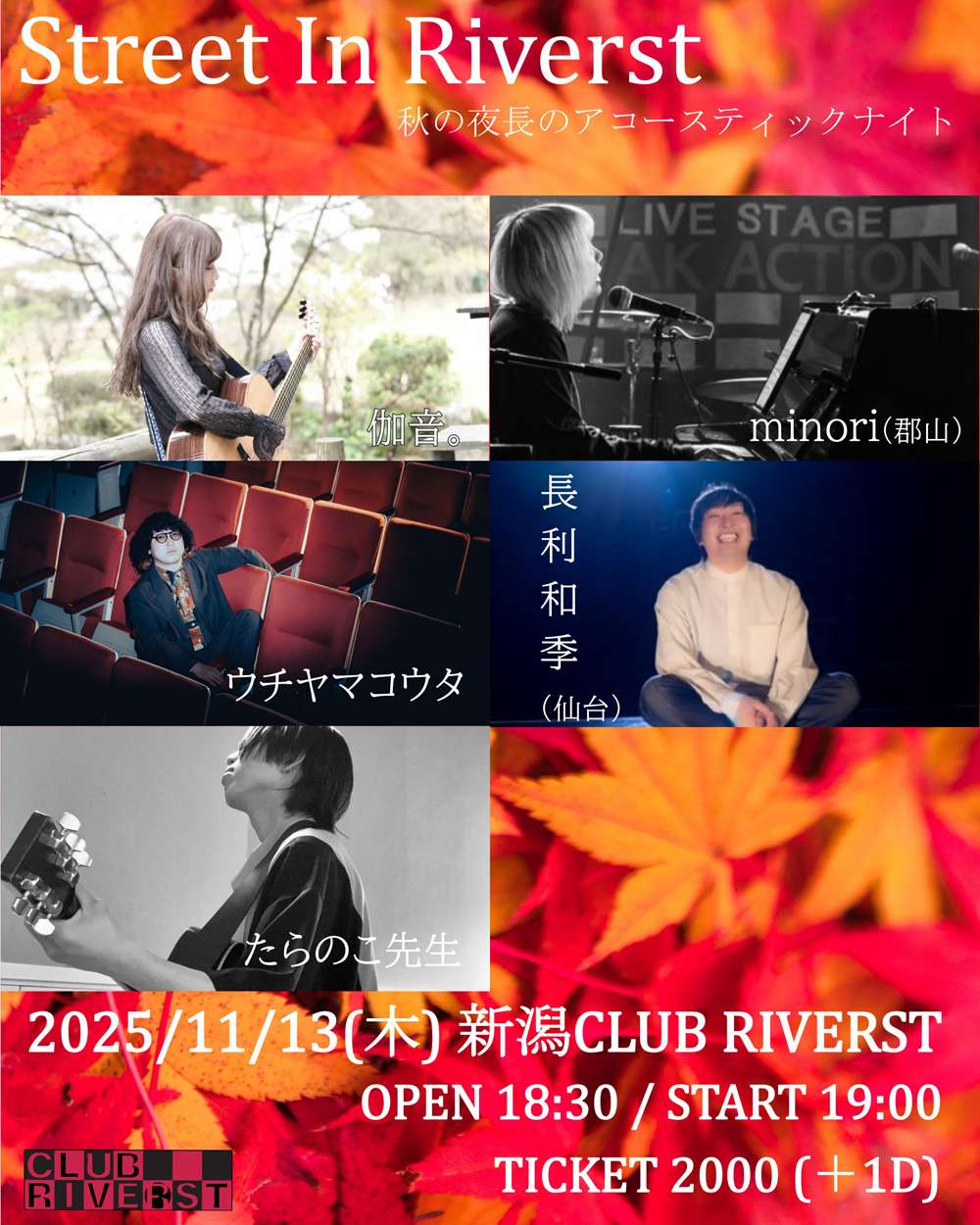 | TICKET | 各出演者 および リバースト店頭(025-250-0430) |