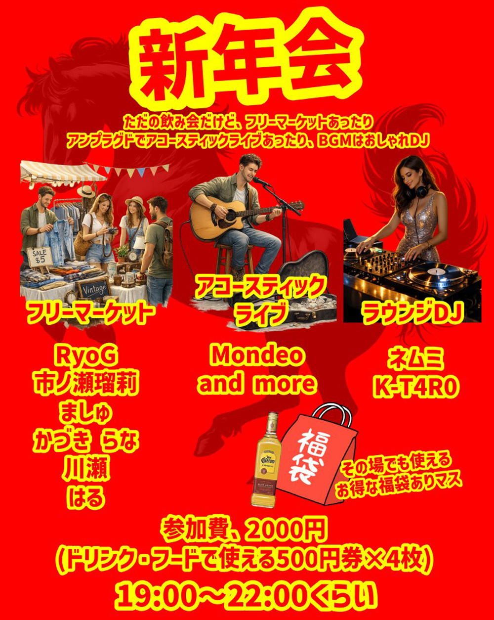 | 参加費 | ¥2,000 / ドリンク・フードで使える500円券×4枚付き |