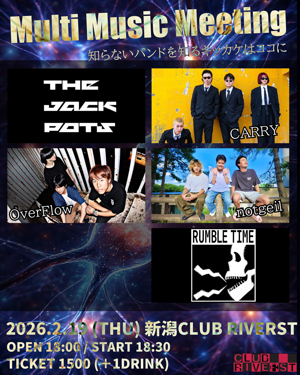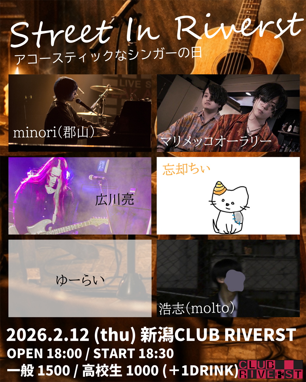 | TICKET | 各出演者 および リバースト店頭(025-250-0430) |