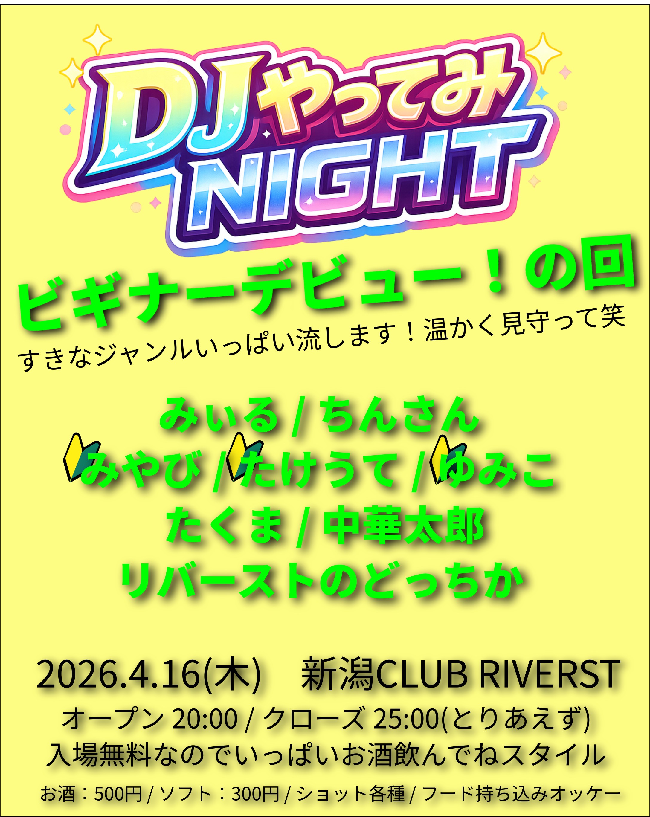 | TITLE | DJやってみNIGHT~ビギナーデビュー!の回~ |