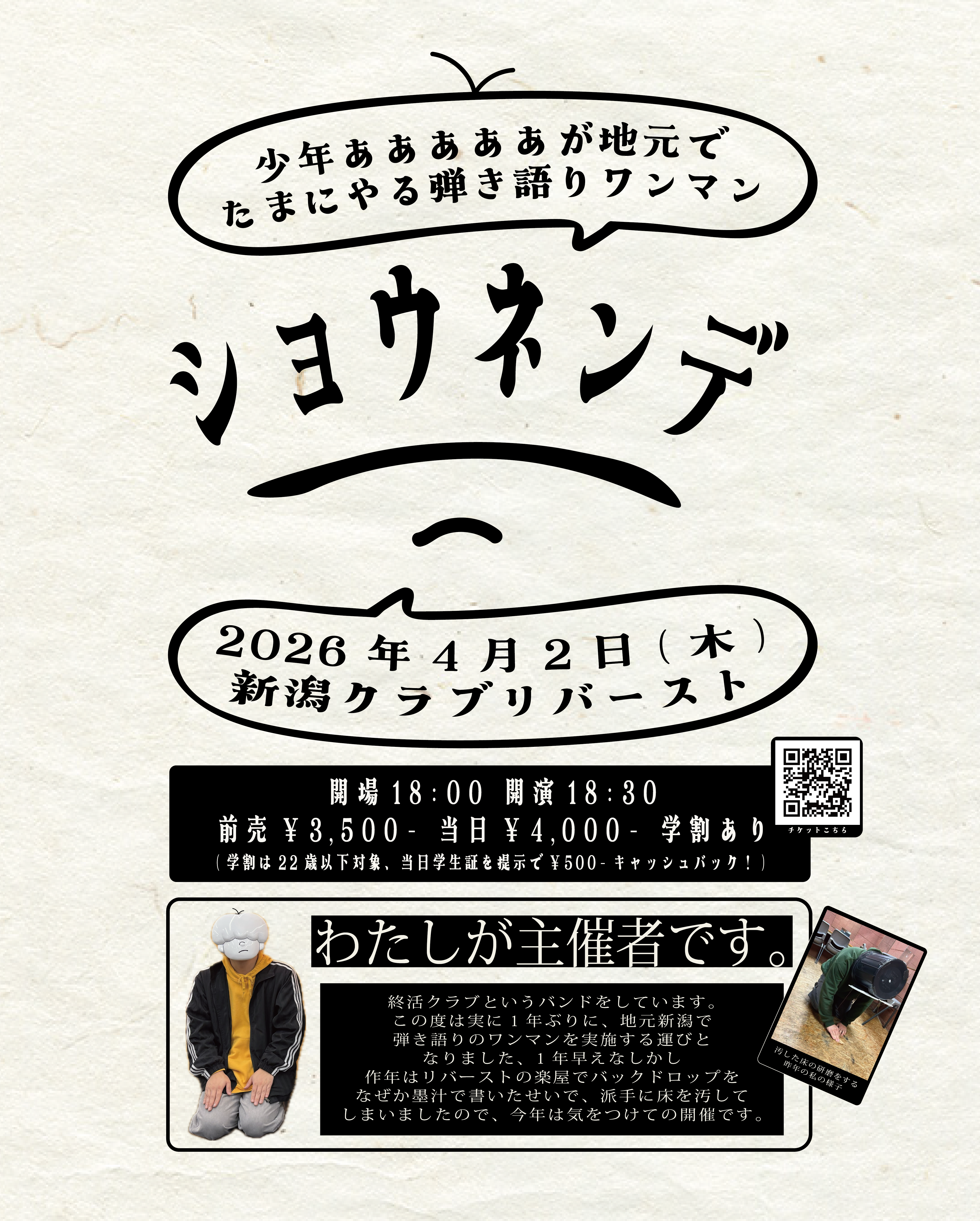 | TITLE | 少年あああああが地元でたまにやる弾き語りワンマン ショウネンデーーーー |