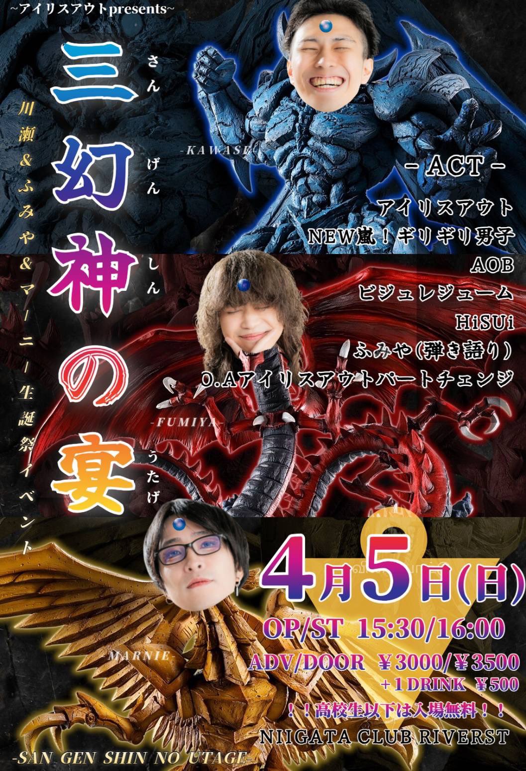 | TITLE | 【三幻神の宴】〜川瀬&ふみや&マーニー生誕祭イベント〜 |